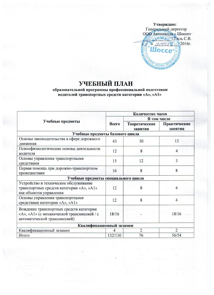 Учебные планы     АвтоМотоШкола "ШОССЕ"